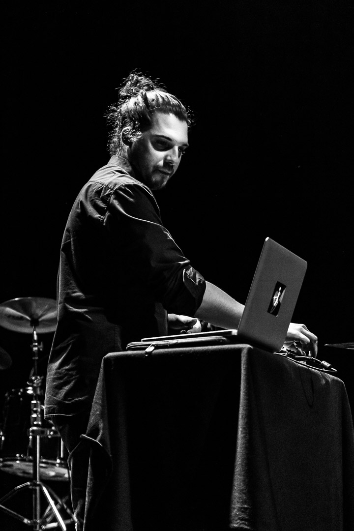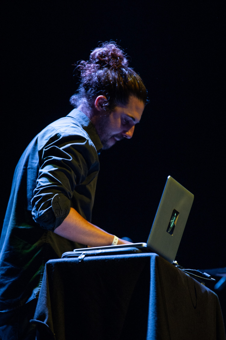 Arrivés sur scène face à une flopée de chaises, Anaïs et Thibault ont la lourde tâche d’ambiancer l’espace sans l’aide du public, ce dernier étant obligé de rester assis tout au long de la soirée. Le duo électro-pop propose un son propre et travaillé. La chanteuse navigue entre son clavier et des chants aux sonorités lointaines, tandis qu’aux machines, le son varie efficacement avec des rythmes doux suivis de vibrations plus marquées.
