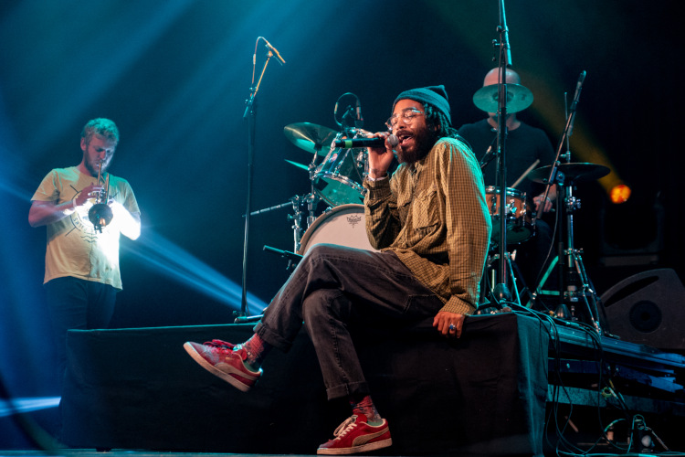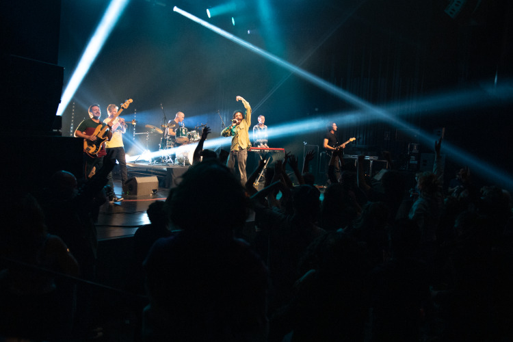 Les six musiciens du Groove Laboratory se mettent en place sur la scène. Les quelques regards échangés nous donnent un indice. Ce qui va suivre sera entraînant et bouillonnant. Sans surprise, le départ lancé par l’arrivée du chanteur, qui prend immédiatement possession de la scène, nous envoie dans un déroulé de chaleurs et de couleurs. Allant de la funk, traversant le hip-hop, puisant dans le jazz, se promenant jusqu’à la soul…